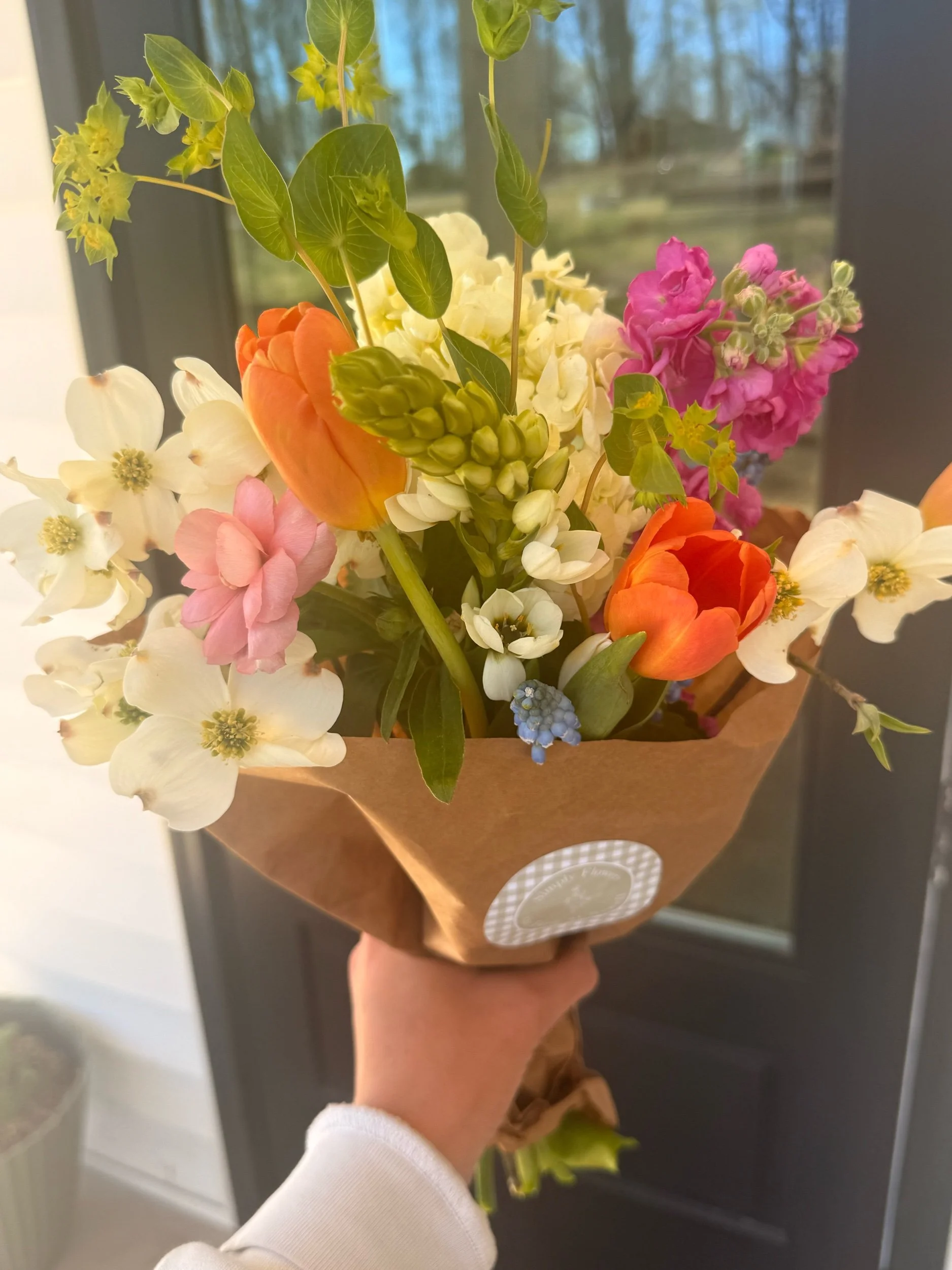 Flowers fresh from our farm and locally sourced fillers are the perfect arrangement for Easter week!