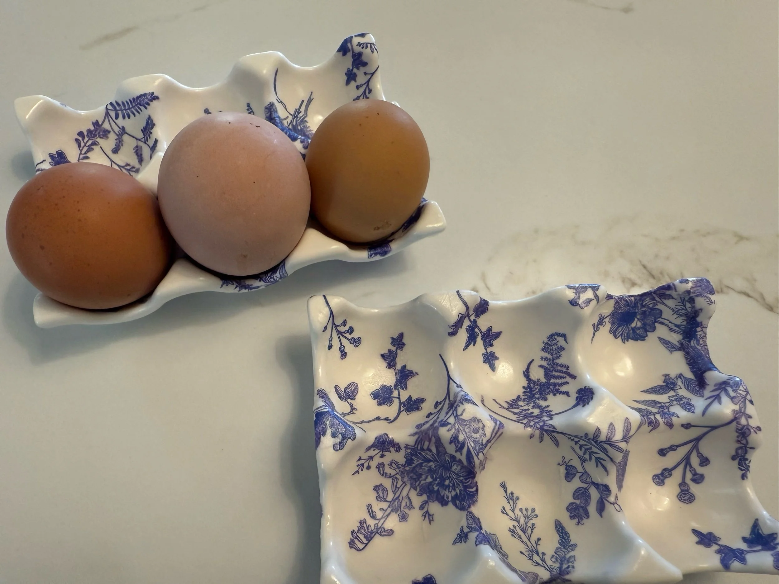 Shop › Hand designed 6 count egg tray Image 1 of 2 Image 2 of 2 Hand designed 6 count egg tray $15.00 Made and designed by a local artisan, these egg trays are perfect for storing your eggs! 6 count Ceramic Quantity: Add To Cart Added! Made and designed by a local artisan, these egg trays are perfect for storing your eggs! 6 count Ceramic